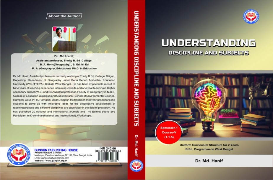 Understanding Discipline and Subjects (Uniform Curriculum structure for 2 years B. Ed. Programme in West Bengal) SEMESTER – I COURSE - V (1.1.5) Author : Dr. Md. Hanif,Assistant Professor Trinity B. Ed College, West Bengal, India Gungun Publishing House First Published in 25 July, 2024. ISBN : 978-81-973098-3-0 Price: 300.00 No. of Pages: 359