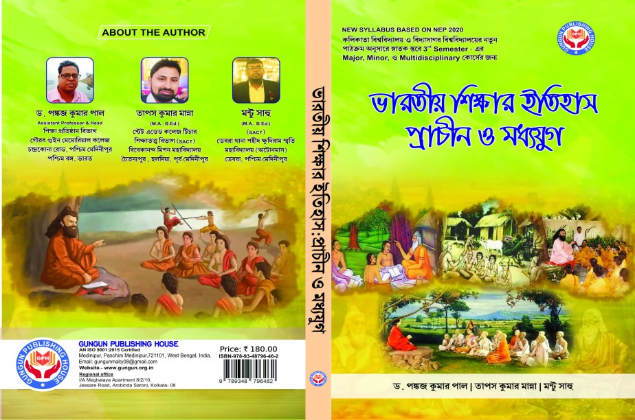 Bharatiya Sikkhar Itihas :Parachin o Modhyajug History of Indian Education (Ancient and Medieval Age) According to New Syllabus of Calcutta University and Vidyasagar University , 3rd SEMESTER Major, Minor & Multidisciplinary, Authors: Dr. Pankaj Kumar Paul Tapas Kumar Manna? Mantu Sahoo ISBN : 978-93-48796-46-2 Price: 180.00 No. of Pages: 110 Gungun Publishing House First Published on 15 th April, 2025. Midnapur, Paschim Medinipur,721101, West Bengal, India. Phone Number :+91 9647222836 Website : www.gungun.org.in