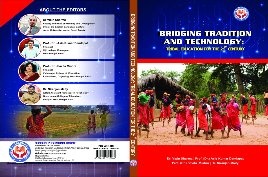 BRIDGING TRADITION AND TECHNOLOGY: TRIBAL EDUCATION FOR THE 21ST CENTURY Cultural identity, local practices, and spiritual beliefs are intricately linked to traditional knowledge in indigenous education. Traditional practices, oral histories, environmental protection, and indigenous languages are common components of this kind of education. Native American wisdom isn't only about the past; it also gives people the skills they need to comprehend their surroundings and live sustainably in the present. "Tribal education has historically been about survival, sustainability, and community cohesion," says one instructor from a tribal community school. "The lessons it contains pertain to developing strong social ties, understanding the land, and living in harmony with nature". EDITORS: Dr. Vipin Sharma Prof. (Dr.) Asis Kumar Dandapat Prof. (Dr.) Savita Mishra Dr. Niranjan Maity Published by GUNGUN PUBLISHING HOUSE ISBN: 978-81-977156-8-6 Price: 400.00 No. of Pages: 132